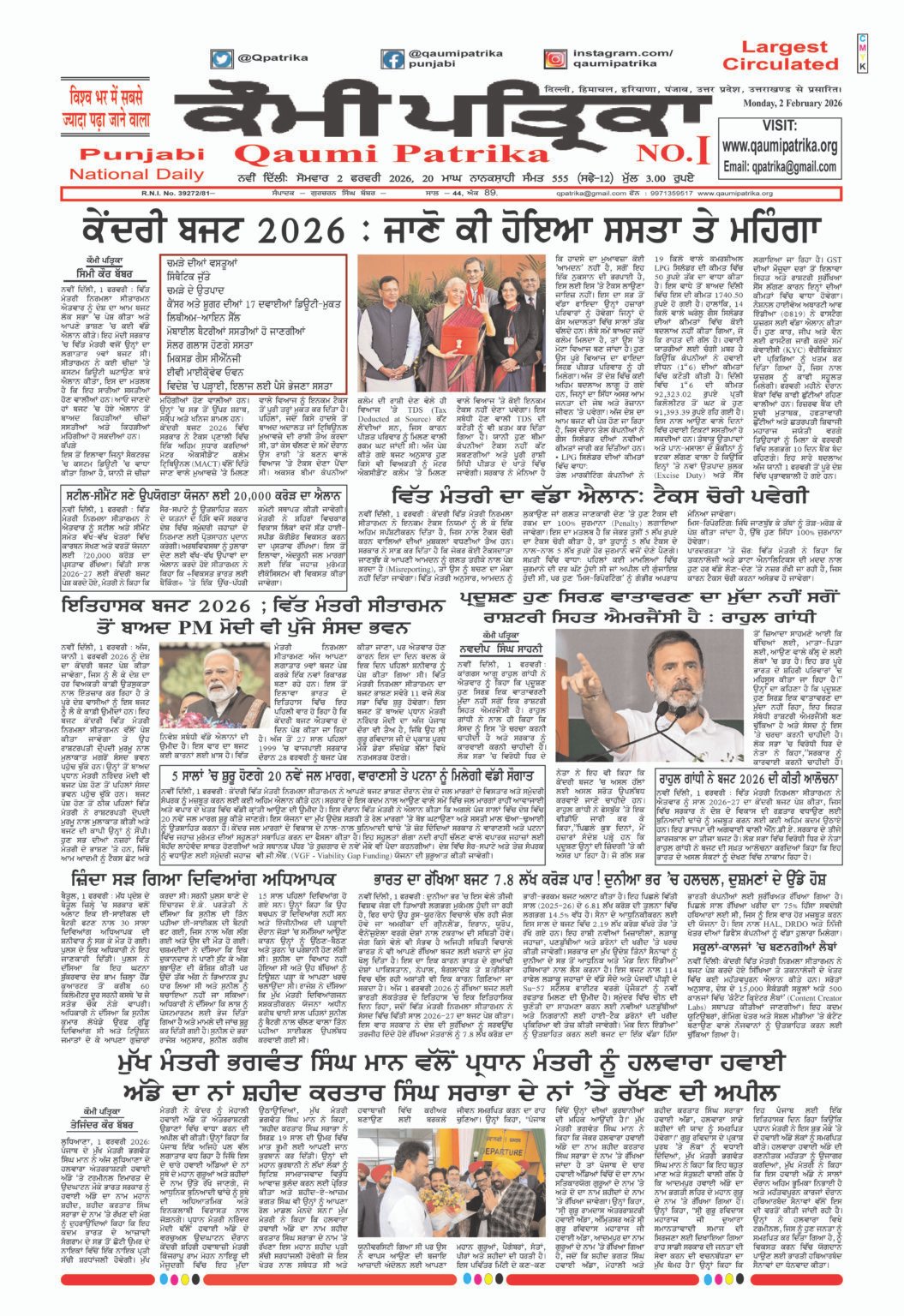Qaumi Patrika, Monday, 2nd February 2026