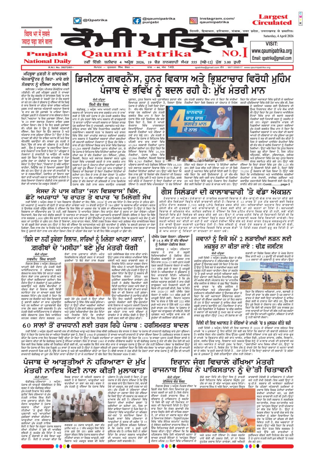 Qaumi Patrika Punjabi, 3 April 2026