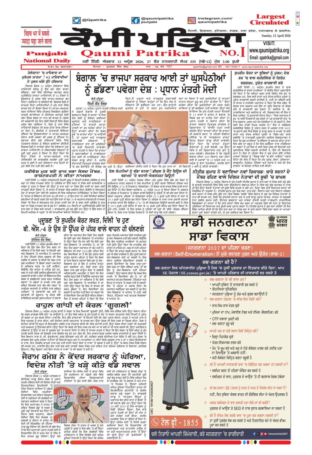 Qaumi Patrika Punjabi, 12 April 2026