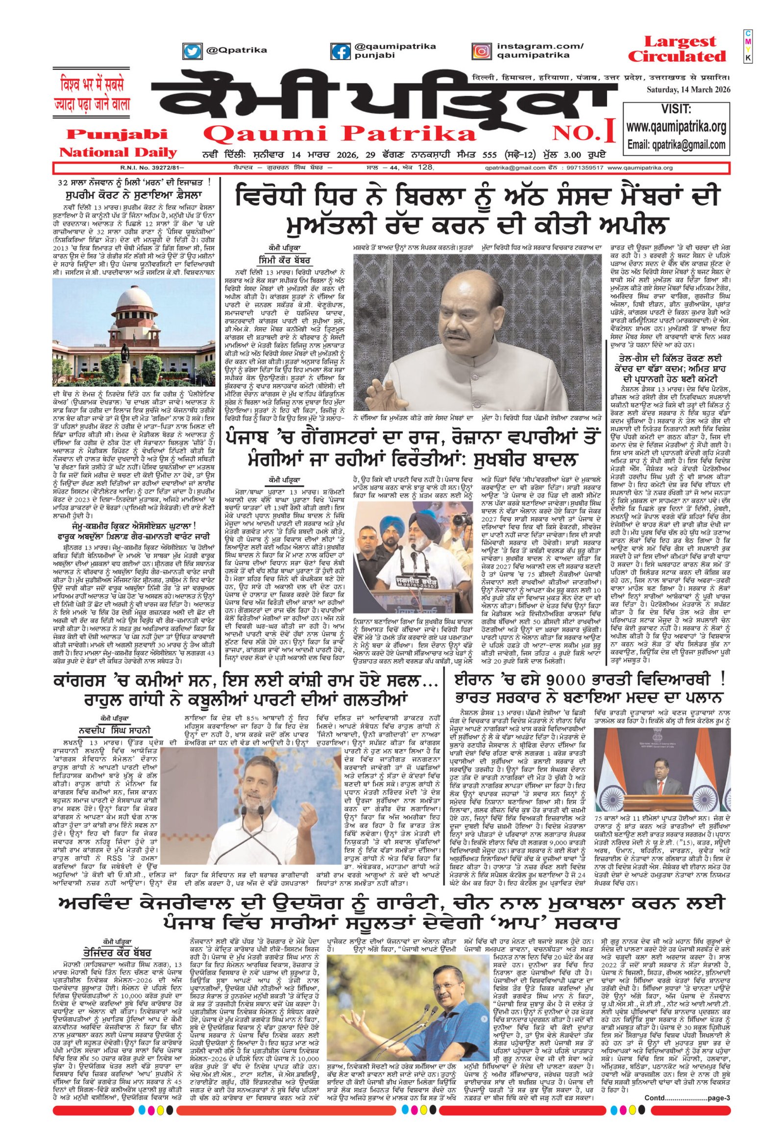 Qaumi Patrika Punjabi, 14 March 2026