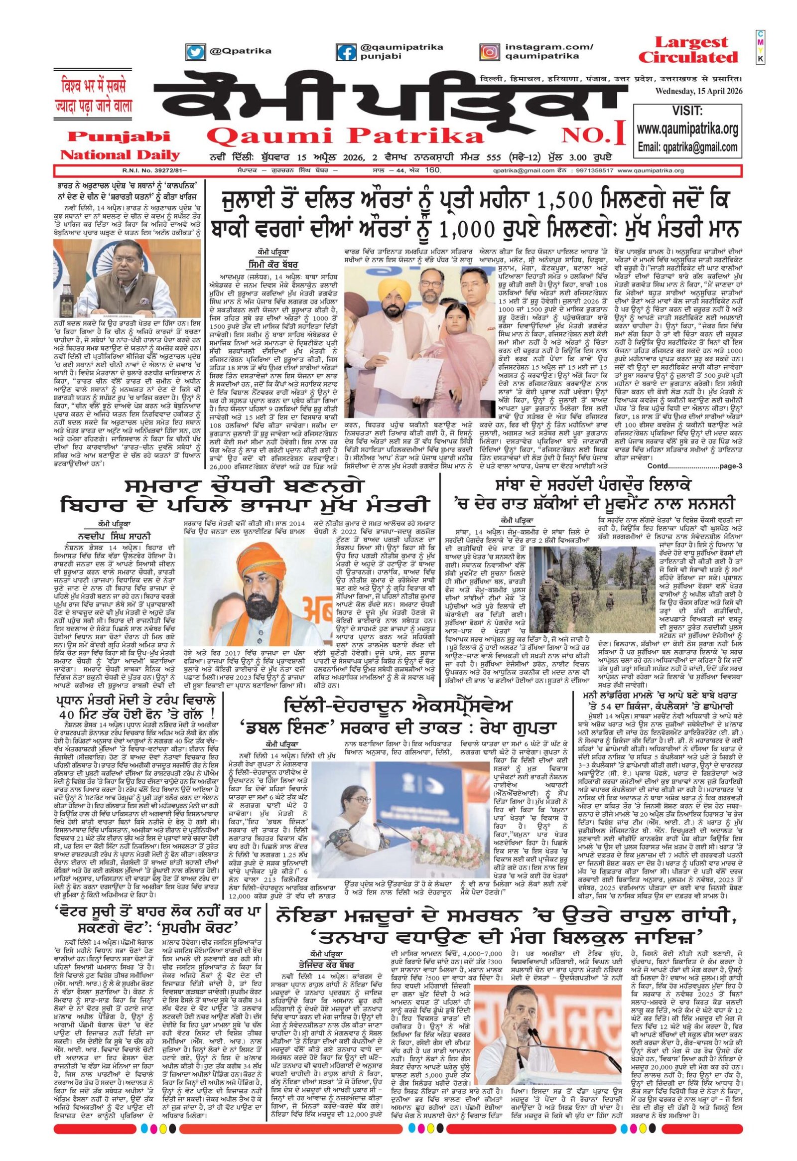 Qaumi Patrika Punjabi, 15 April 2026