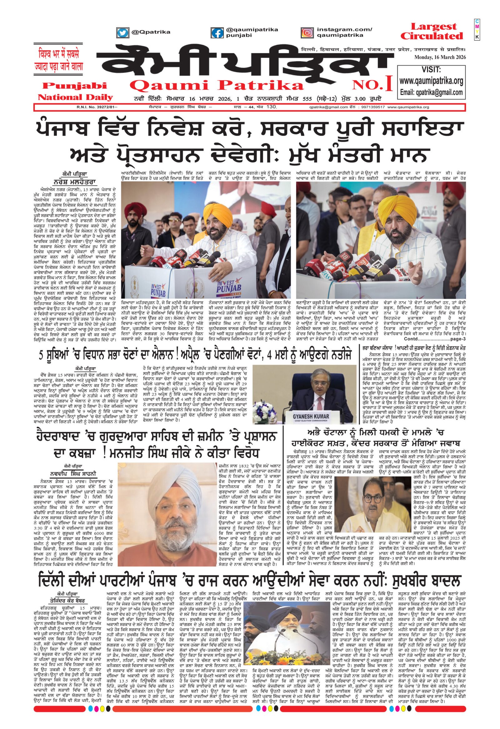 Home » Blog » Qaumi Patrika Punjabi, 16 March 2026