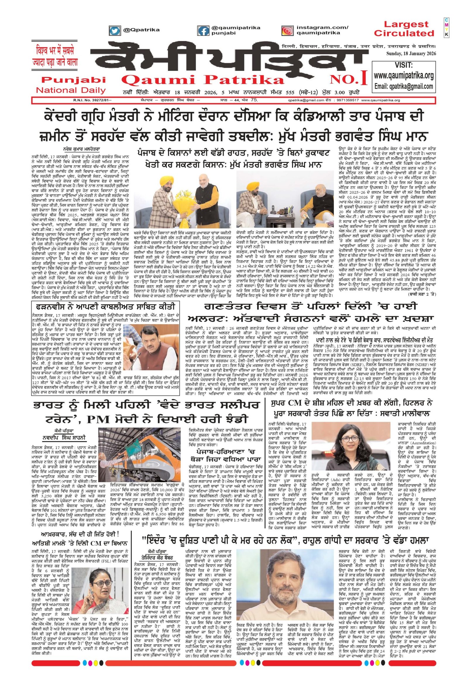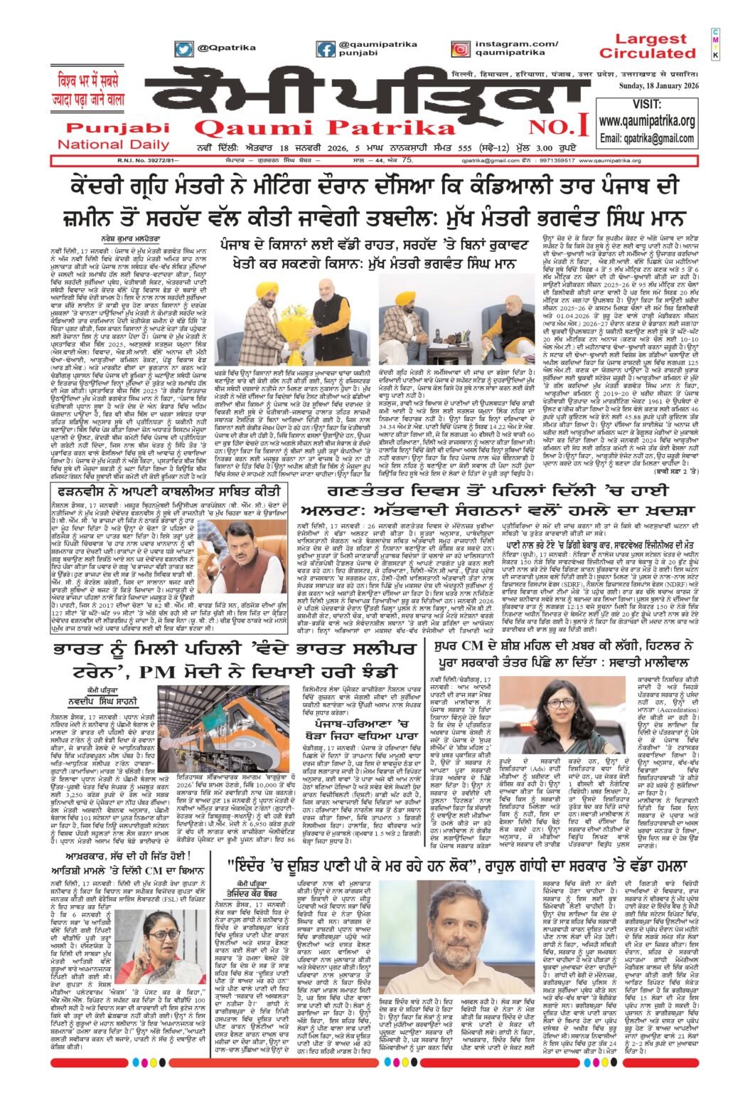 Qaumi Patrika Punjabi, 18 January 2026