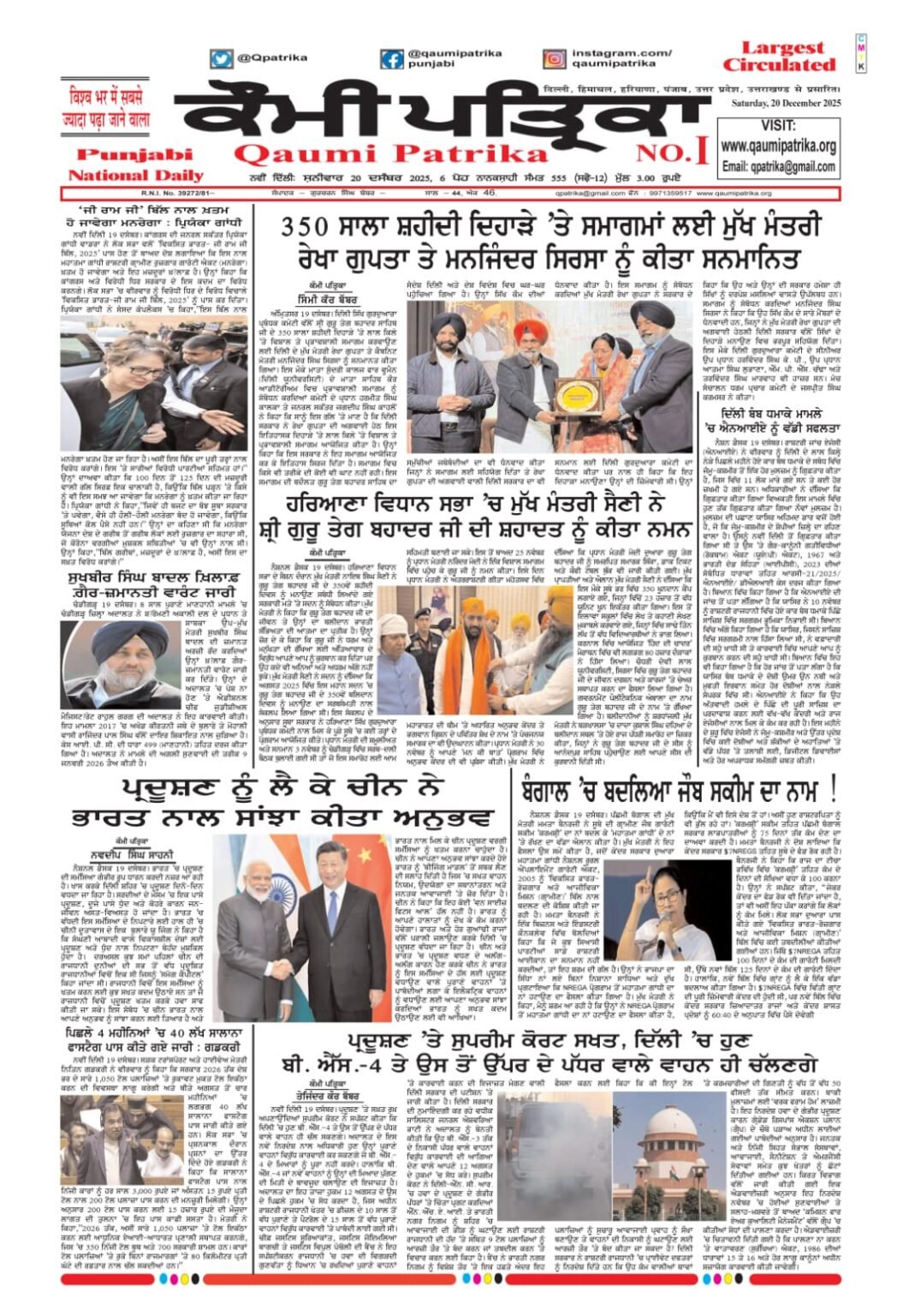 Qaumi Patrika Punjabi, 20 Dec 2025