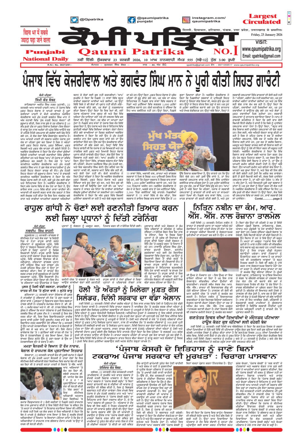 Home » Blog » Qaumi Patrika Punjabi, 23 January 2026