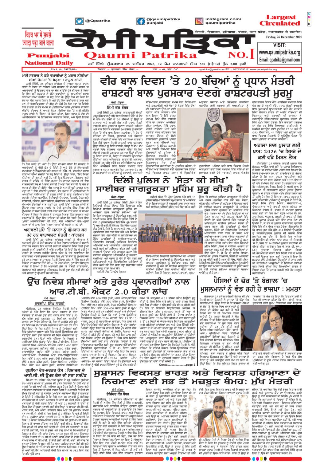Qaumi Patrika Punjabi, 26 Dec 2025