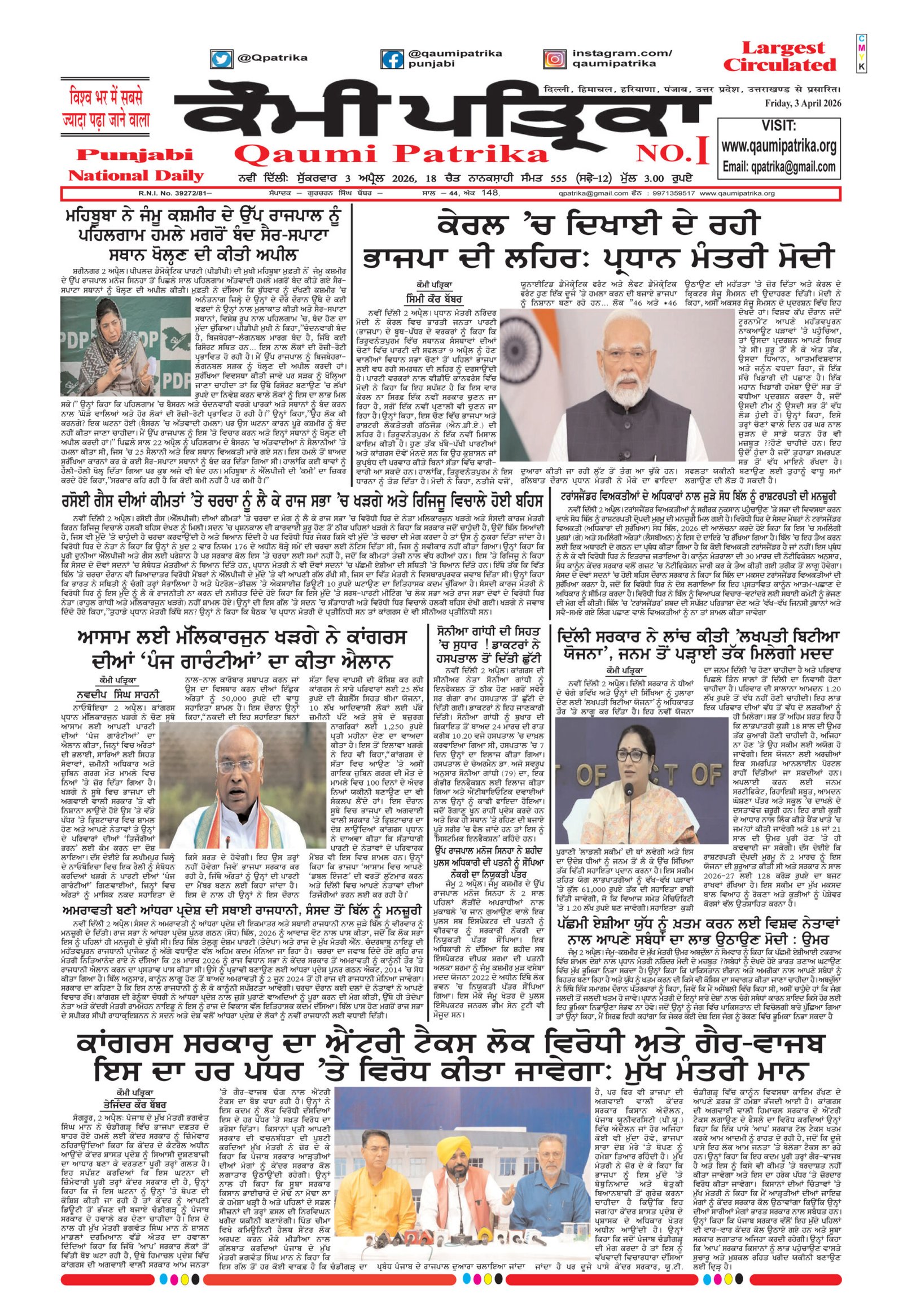 Qaumi Patrika Punjabi, 3 April 2026