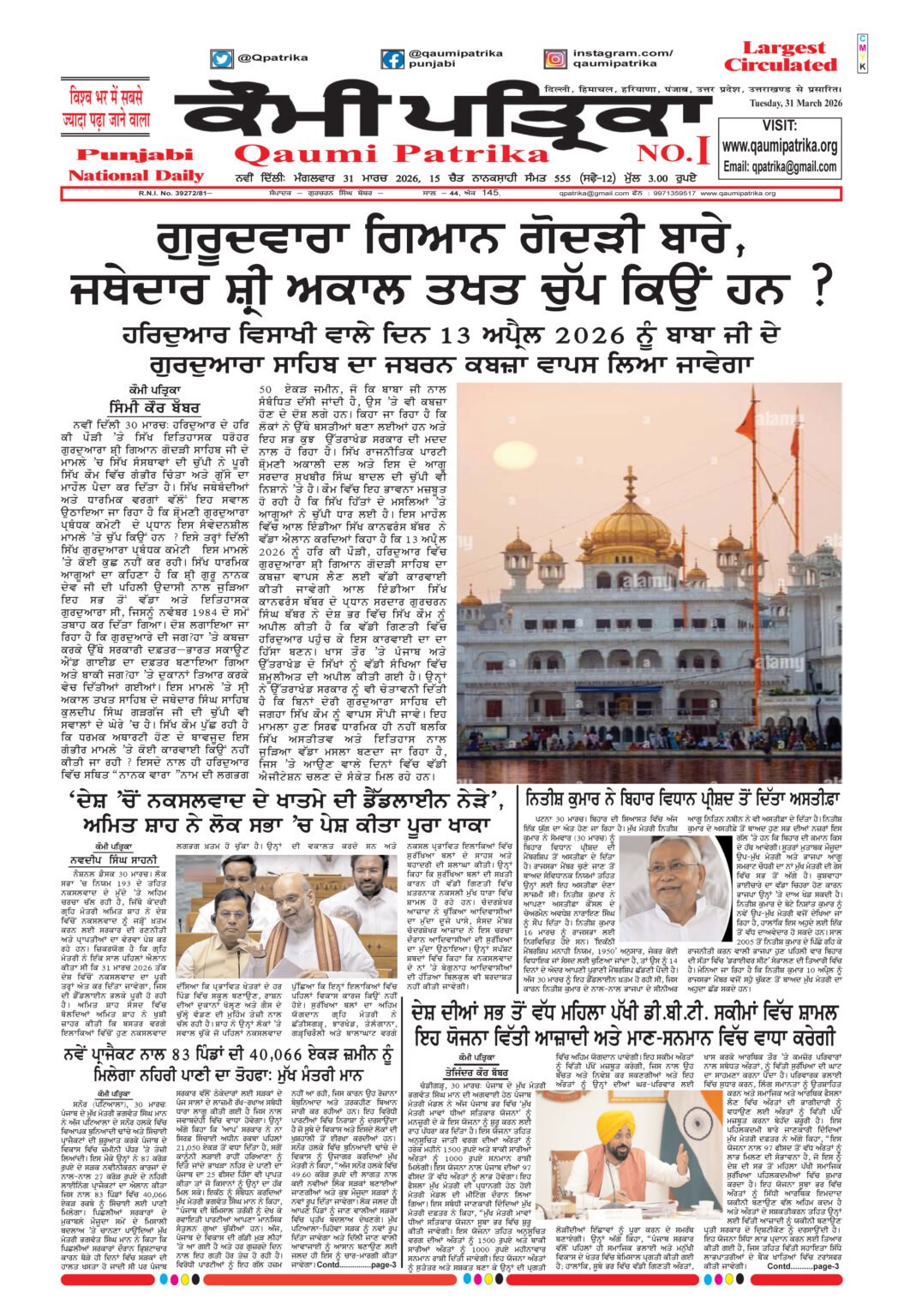 Qaumi Patrika Punjabi, 31 March 2026