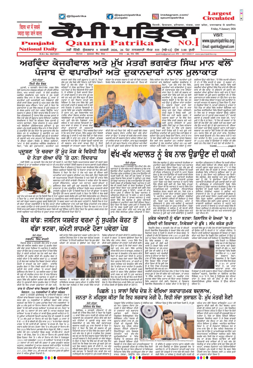 Qaumi Patrika Punjabi, 9 January 2026