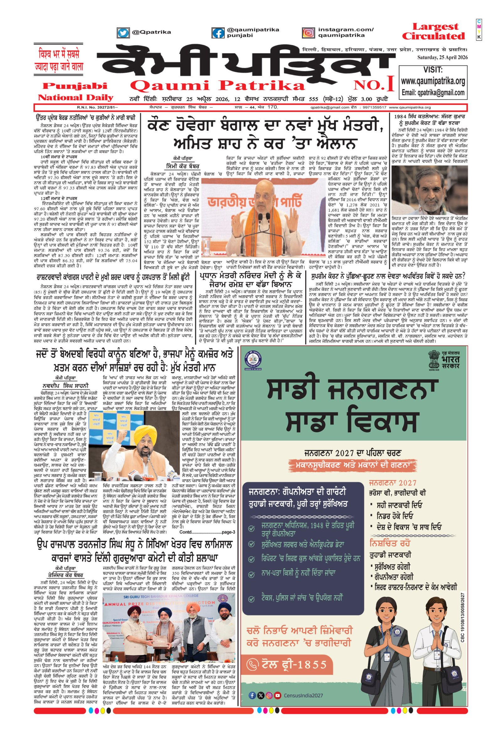 Qaumi Patrika Punjabi, April 25, 2026
