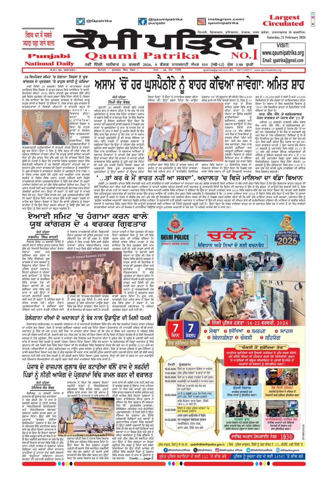Qaumi Patrika Punjabi, February 21, 2026