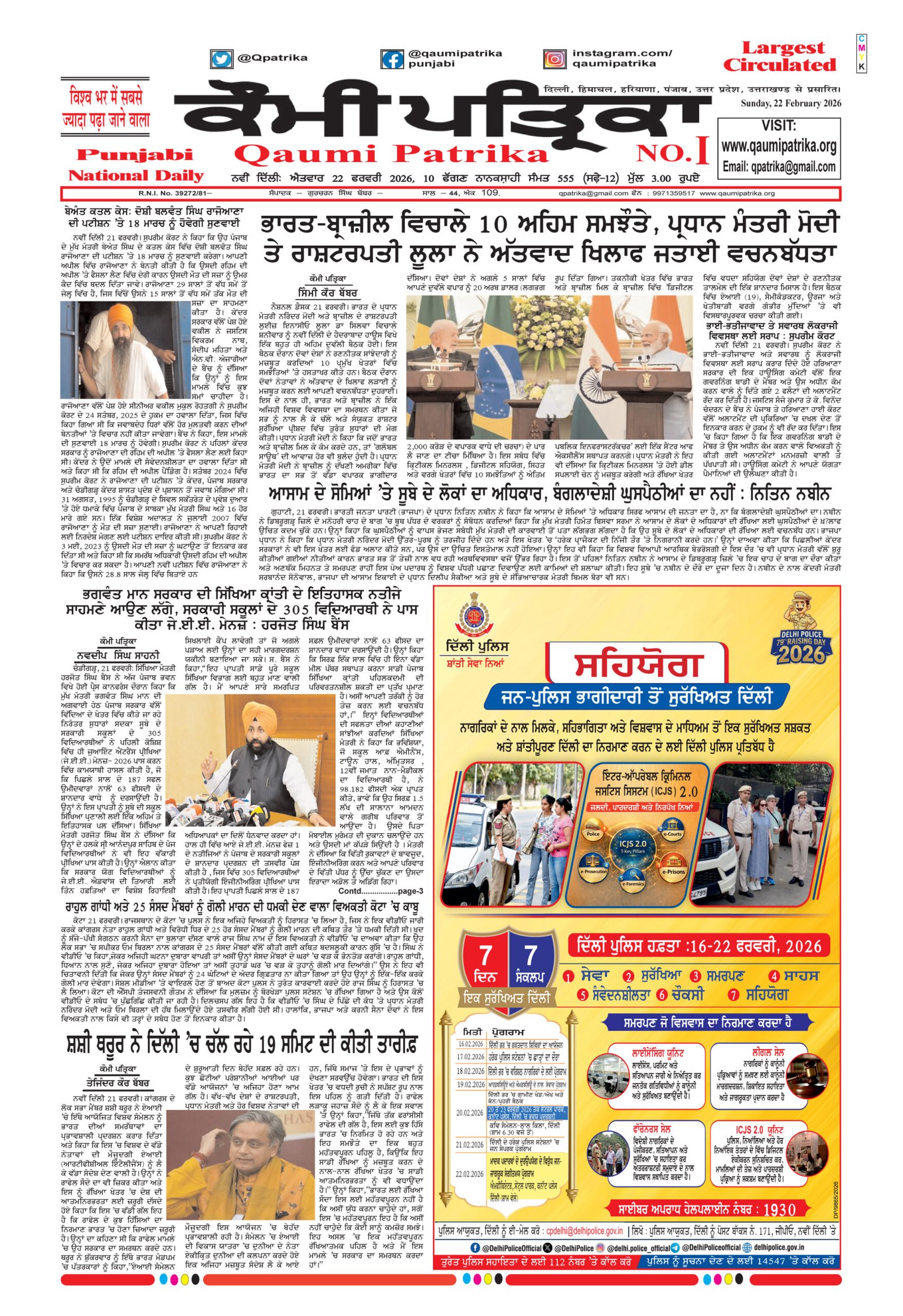 Home » Blog » Qaumi Patrika Punjabi, February 22, 2026