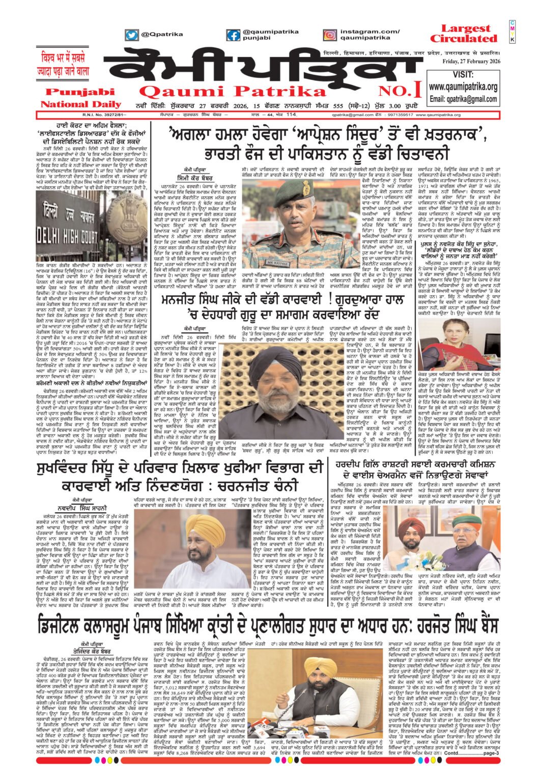 Qaumi Patrika Punjabi, February 27, 2026
