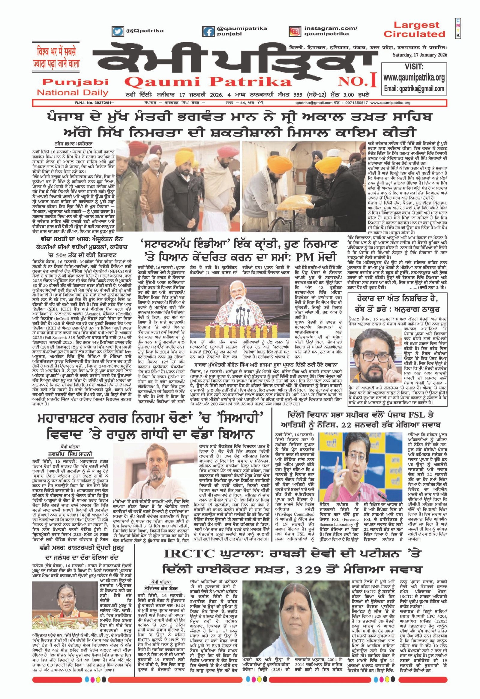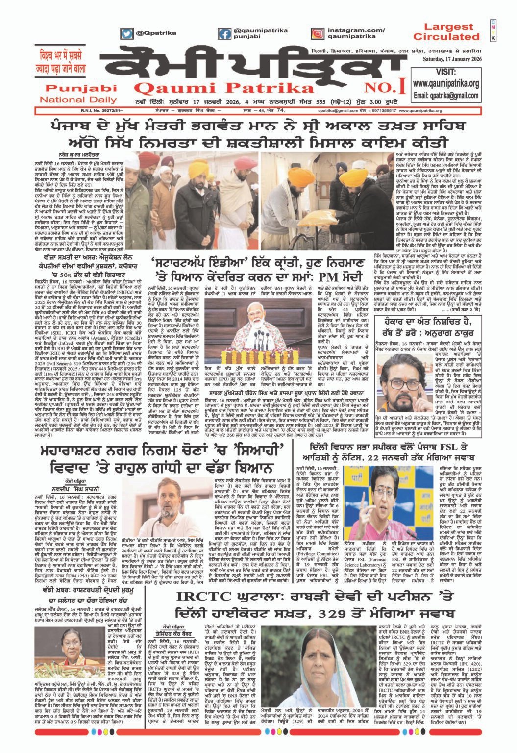 Qaumi Patrika Punjabi, January 17, 2026