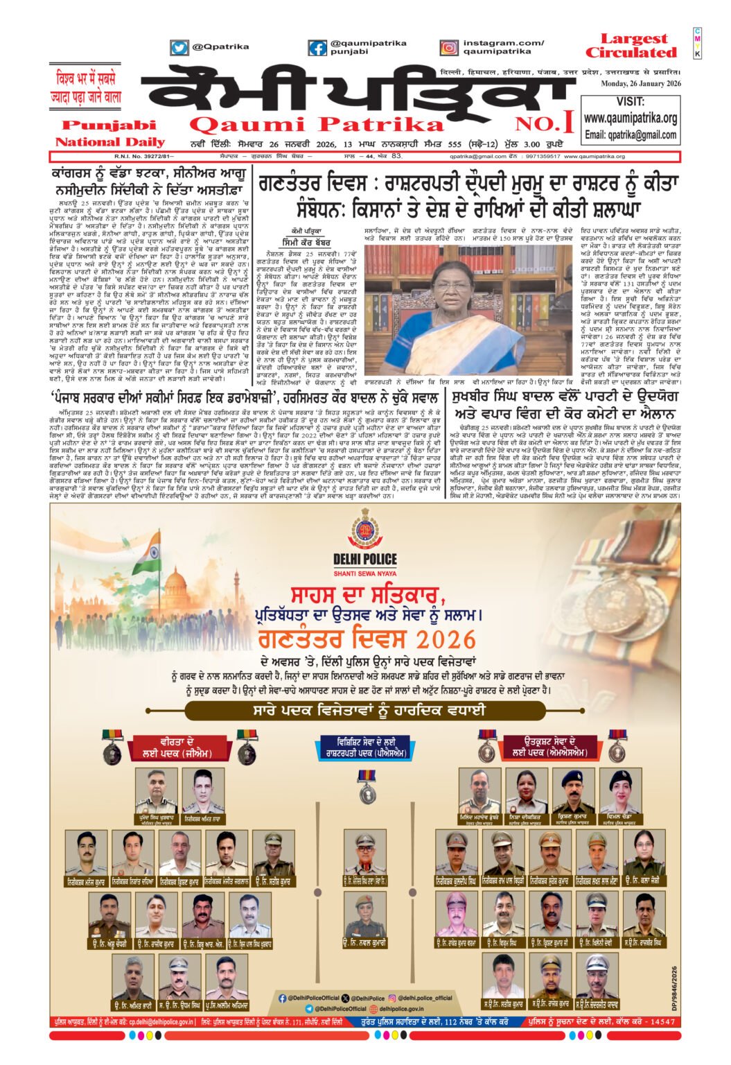 Qaumi Patrika Punjabi, January 26, 2026