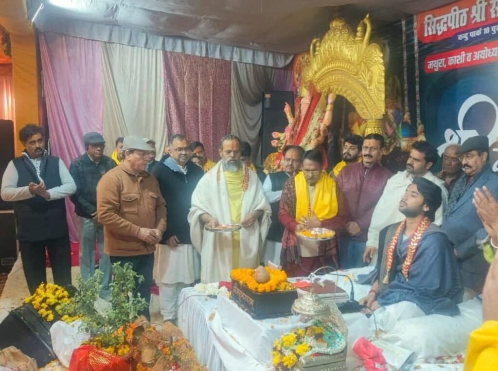 ਪੂਰਬੀ ਦਿੱਲੀ: ਮਹਾਂਮੰਡਲੇਸ਼ਵਰ ਸ੍ਰੀ ਰਾਮਗੋਵਿੰਦ ਦਾਸ ਮਹਾਤਿਆਗੀ ਜੀ ਮਹਾਰਾਜ ਦੀ ਮੌਜੂਦਗੀ ਵਿੱਚ, ਪੂਰਬੀ ਦਿੱਲੀ ਦੀ ਏ.ਜੀ.ਸੀ.ਆਰ. ਕਲੋਨੀ (ਕਰਕੜਡੂਮਾ ਕੋਰਟ ਦੇ ਨੇੜੇ) ਵਿੱਚ ਚੱਲ ਰਹੇ “8 ਦਿਨਾਂ ਅਸ਼ਟੋਤਰ ਸ਼ਤ ਪਰਾਇਣ ਸ਼੍ਰੀਮਦ ਭਾਗਵਤ ਮਹਾਪੂਰਨ ਗਿਆਨ ਯੱਗ ਮਹੋਤਸਵ” ਵਿੱਚ, ਮਥੁਰਾ, ਕਾਸ਼ੀ, ਅਯੋਧਿਆ ਅਤੇ ਵ੍ਰਿੰਦਾਵਨ ਦੇ ਸੰਤਾਂ ਅਤੇ ਆਚਾਰਿਆ ਤੋਂ ਇਲਾਵਾ, ਹਜ਼ਾਰਾਂ ਸਨਾਤਨ ਧਰਮ ਪ੍ਰੇਮੀ ਸ਼ਰਧਾਲੂਆਂ ਨੇ ਈਸਾਈ ਨਵੇਂ ਸਾਲ (ਅੰਗਰੇਜ਼ੀ ਸਾਲ) 2026 ਦਾ ਸਨਾਤਨ ਸੱਭਿਆਚਾਰ ਨਾਲ ਸਵਾਗਤ ਕੀਤਾ।